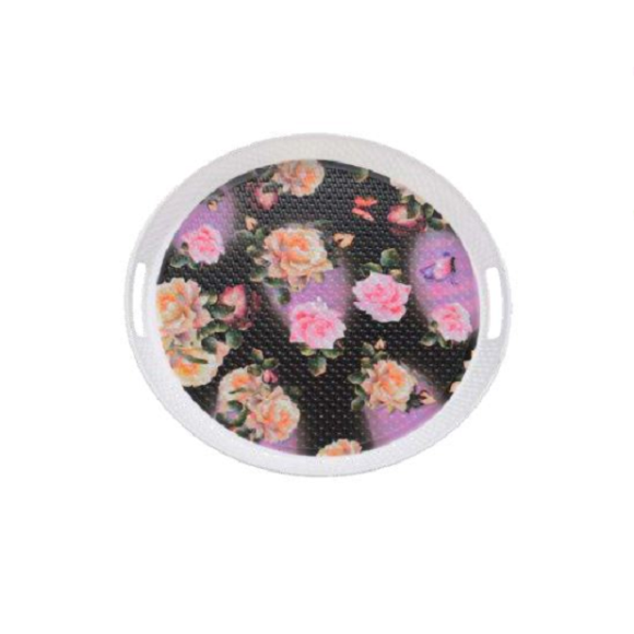 BANDEJA PLÁSTICA REDONDA DECORADA 29,7CM