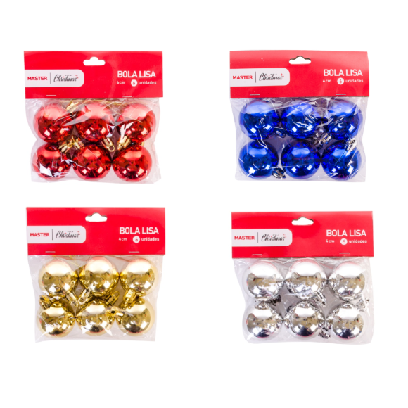 BOLA NATAL LISA 4CM C/ 6 PEÇAS