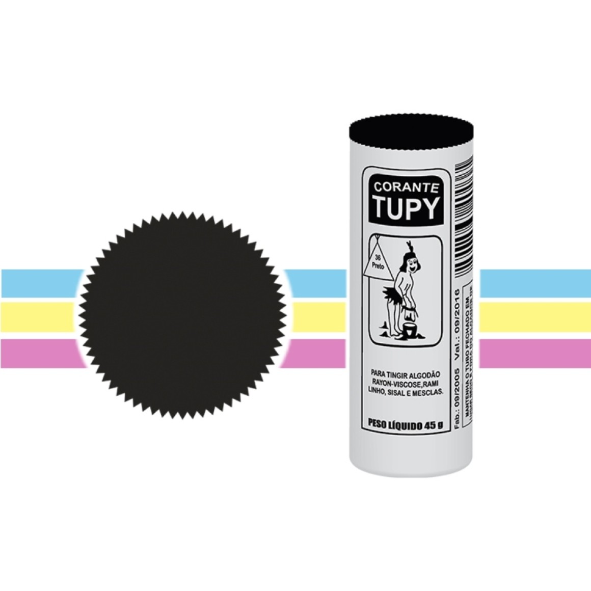 O Corante Tupy® é um corante de composição orgânica, tendo o seu pH, em média, neutro, quando dissolvido em água quente, não apresenta odor e sua forma física é sólida e não apresenta característica tóxica.