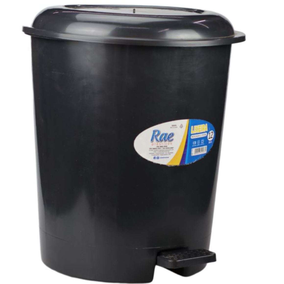 LIXEIRA PEDAL REDONDA 12 LITROS PRETA